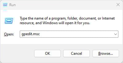 Abra Executar. Digite gpedit.msc e pressione Enter. Se você estiver em uma edição do Windows que não seja Pro ou Enterprise, será necessário habilitar o Group Policy Editor.![]()