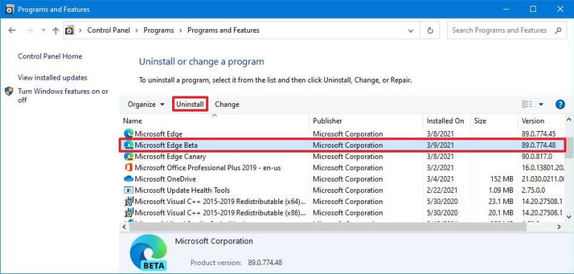 No comando, certifique-se de substituir PROGRAM-NAME pelo nome real do aplicativo, conforme listado na etapa acima. Por exemplo, este comando remove o aplicativo Microsoft Edge Dev: