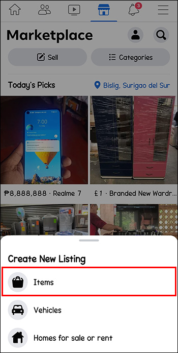 Veja como fazer uma listagem no Facebook Marketplace enquanto estiver no aplicativo do Facebook: