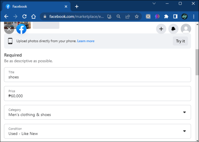Para criar uma listagem no Facebook Marketplace, você precisa inserir informações gerais sobre seu produto para que os compradores possam tomar uma decisão informada.