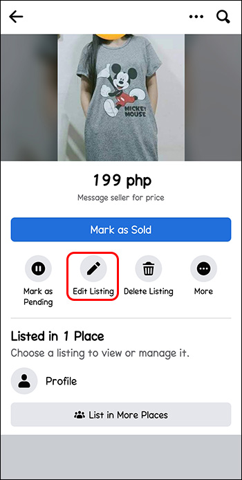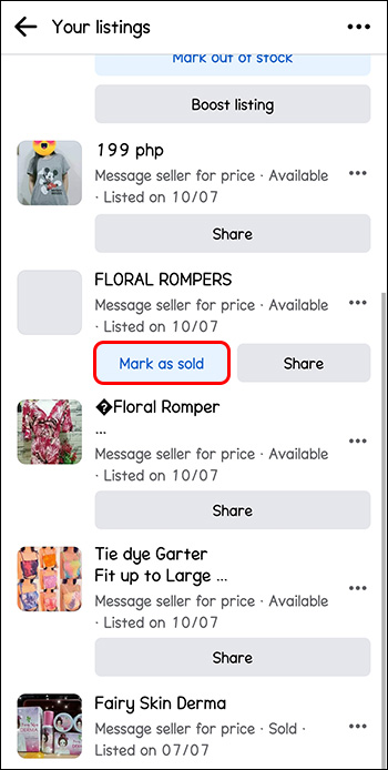 Depois que uma transação for concluída, você pode querer marcar sua listagem como vendida para evitar que outros compradores entrem em contato com você. Isso notificará qualquer comprador em potencial de que o item foi vendido. Isso também tornará a listagem invisível para os usuários do Facebook Marketplace.