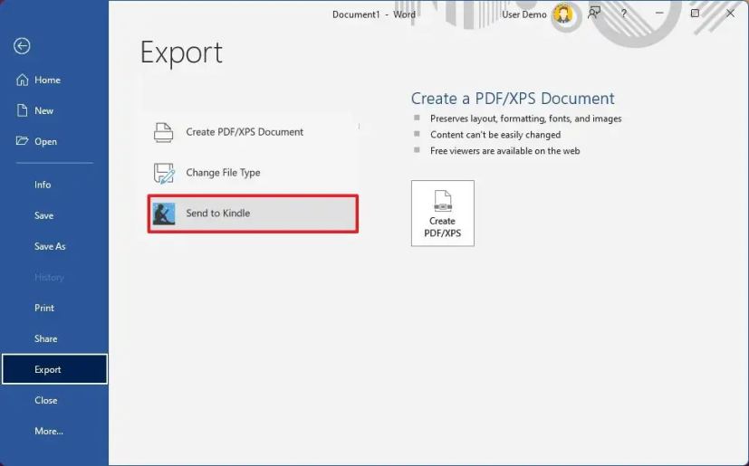 Enviar documentos do Word para o Kindle no Windows 11