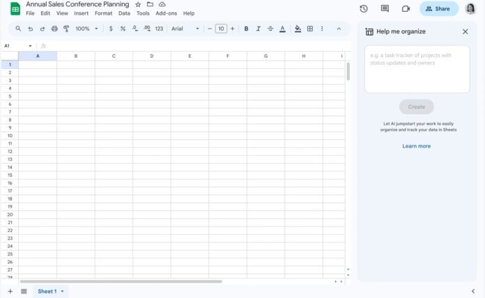 Planilhas Google podem se beneficiar da classificação automatizada de dados do Duet AI e da criação de planos personalizados. A IA pode entender o contexto dos dados em uma célula e atribuir um rótulo a ela, tornando a entrada e a análise de dados mais eficientes. O recurso”ajude-me a organizar”no Planilhas permite que os usuários descrevam seus objetivos, e a IA gera um plano para ajudá-los a se organizar. A empresa afirma que”o Duet AI ajuda você a criar planos organizados com ferramentas que fornecem um início rápido”.
