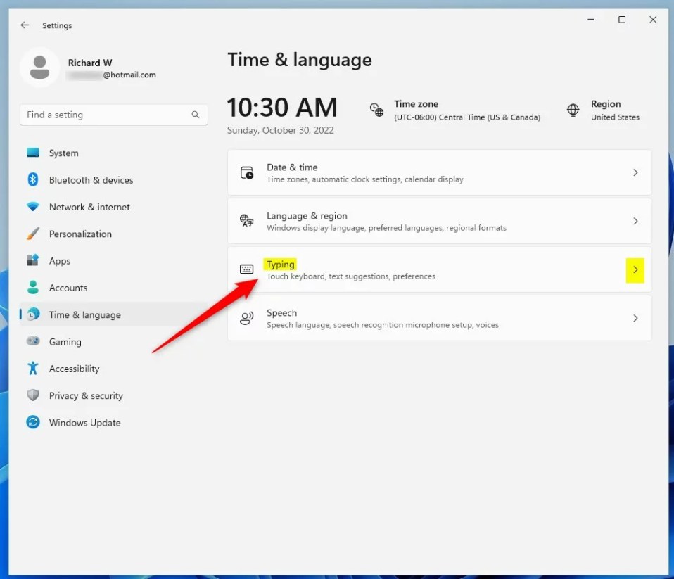 Quando o aplicativo Configurações abrir, clique no Tempo & idioma botão à esquerda.