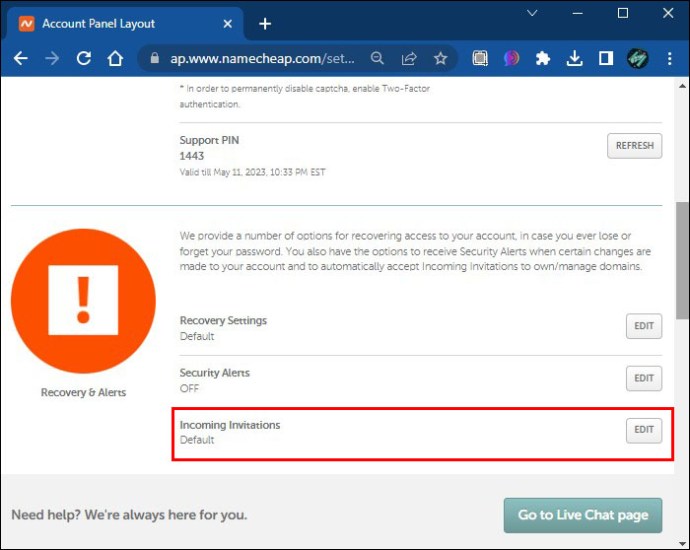 Esta opção também será útil se você estiver transferindo o domínio para outra conta Namecheap de sua propriedade.