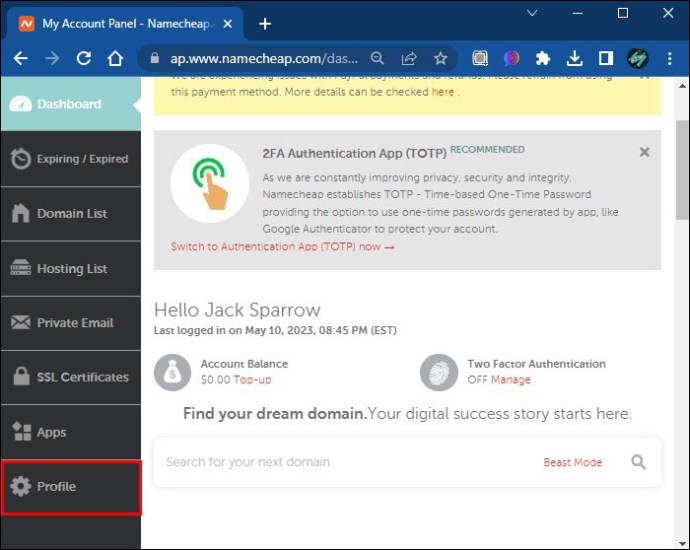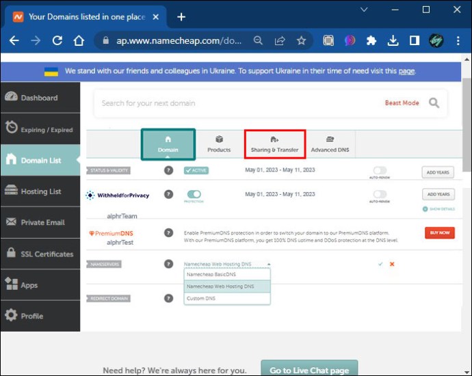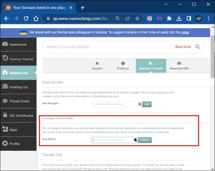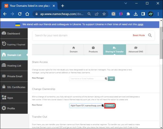 Como transferir propriedade de domínio no NameCheap