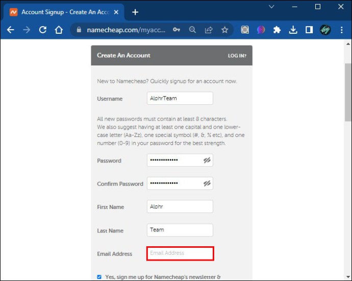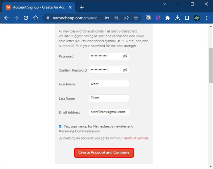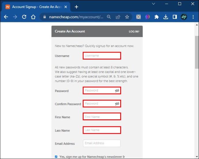 A partir daí, o novo proprietário pode criar uma conta Namecheap. Aqui estão as etapas para fazer isso: