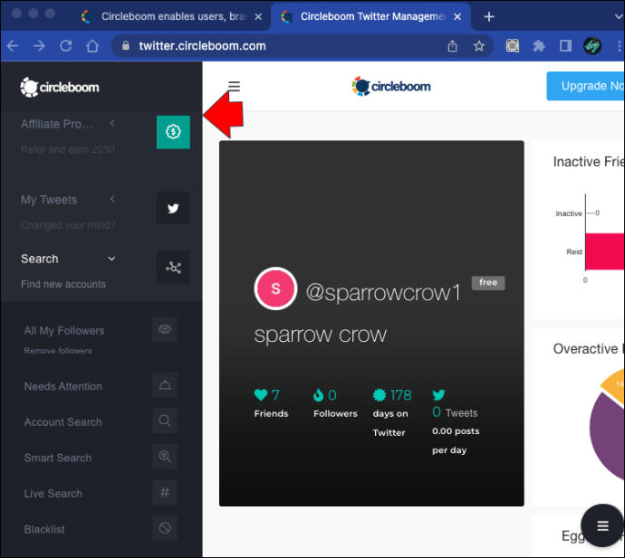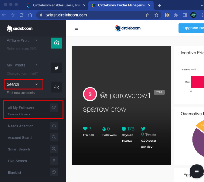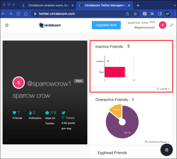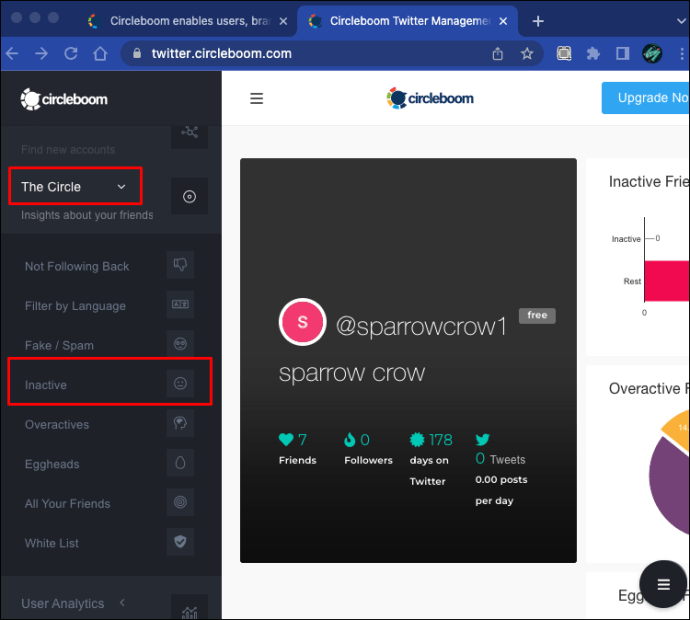 Embora a maioria acredite que quanto maior a contagem de seguidores de um usuário, maior sua autoridade, isso não é necessariamente verdade. O Twitter leva em consideração mais métricas do que esses dígitos, e um grande número de seguidores inativos pode realmente afetam mal seu desempenho. Identifique seus amigos e seguidores inativos usando a ferramenta do Twitter do Circleboom e não hesite em remover usuários que não contribuem mais para sua presença no Twitter.