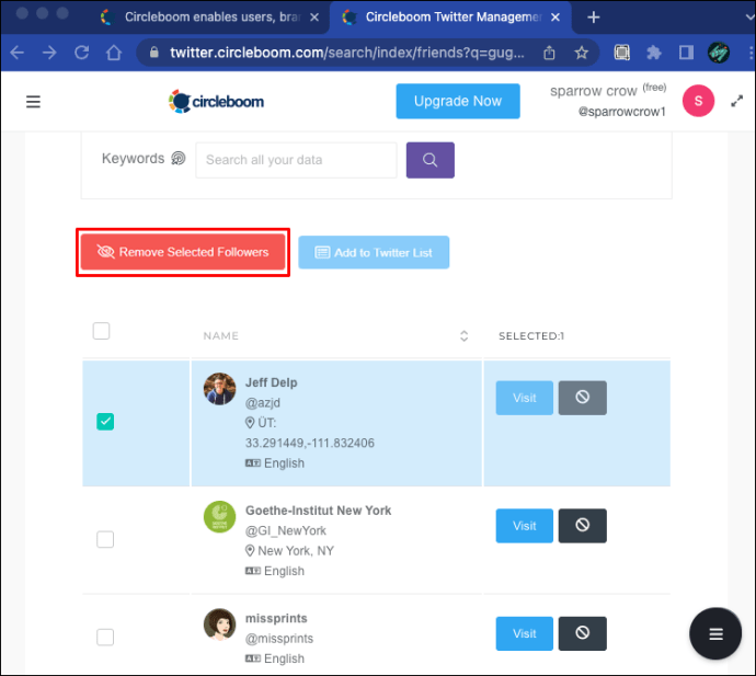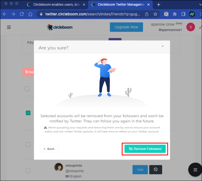 No entanto, você também pode remover seguidores inativos em massa diretamente no Circleboom: