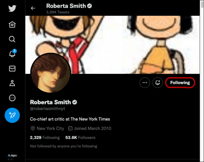 Pare de seguir o usuário clicando no botão”Seguindo”.