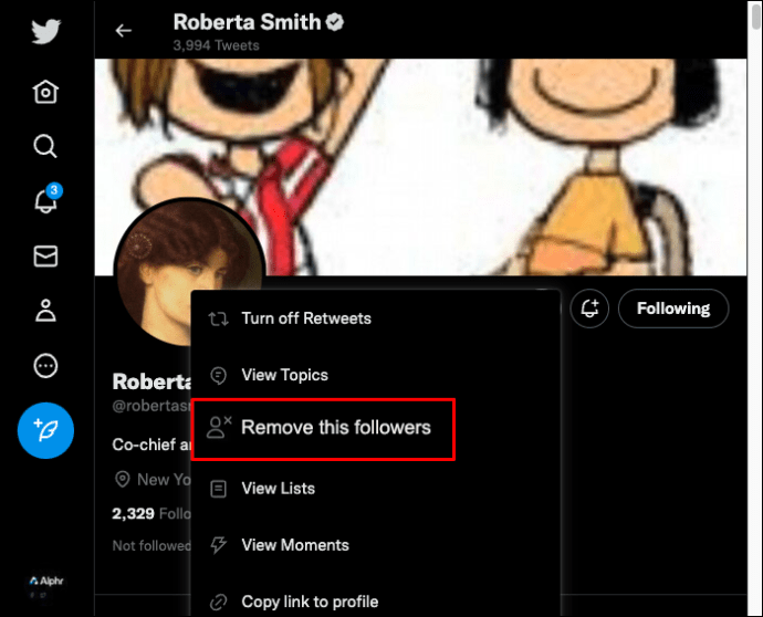 Remova-os de seus seguidores pressionando o menu de três pontos em seu perfil e selecionando”Remover este seguidores”
