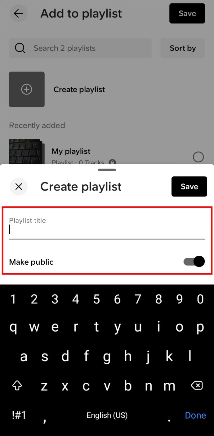 Se você não tiver uma lista de reprodução SoundCloud existente à qual deseja adicionar esta faixa, você pode mude para a guia”Criar uma lista de reprodução”no pop-up e digite o nome da nova lista de reprodução.