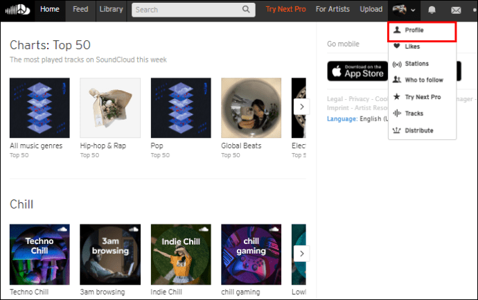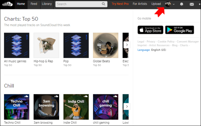 Acesse seu perfil do SoundCloud tocando no ícone.