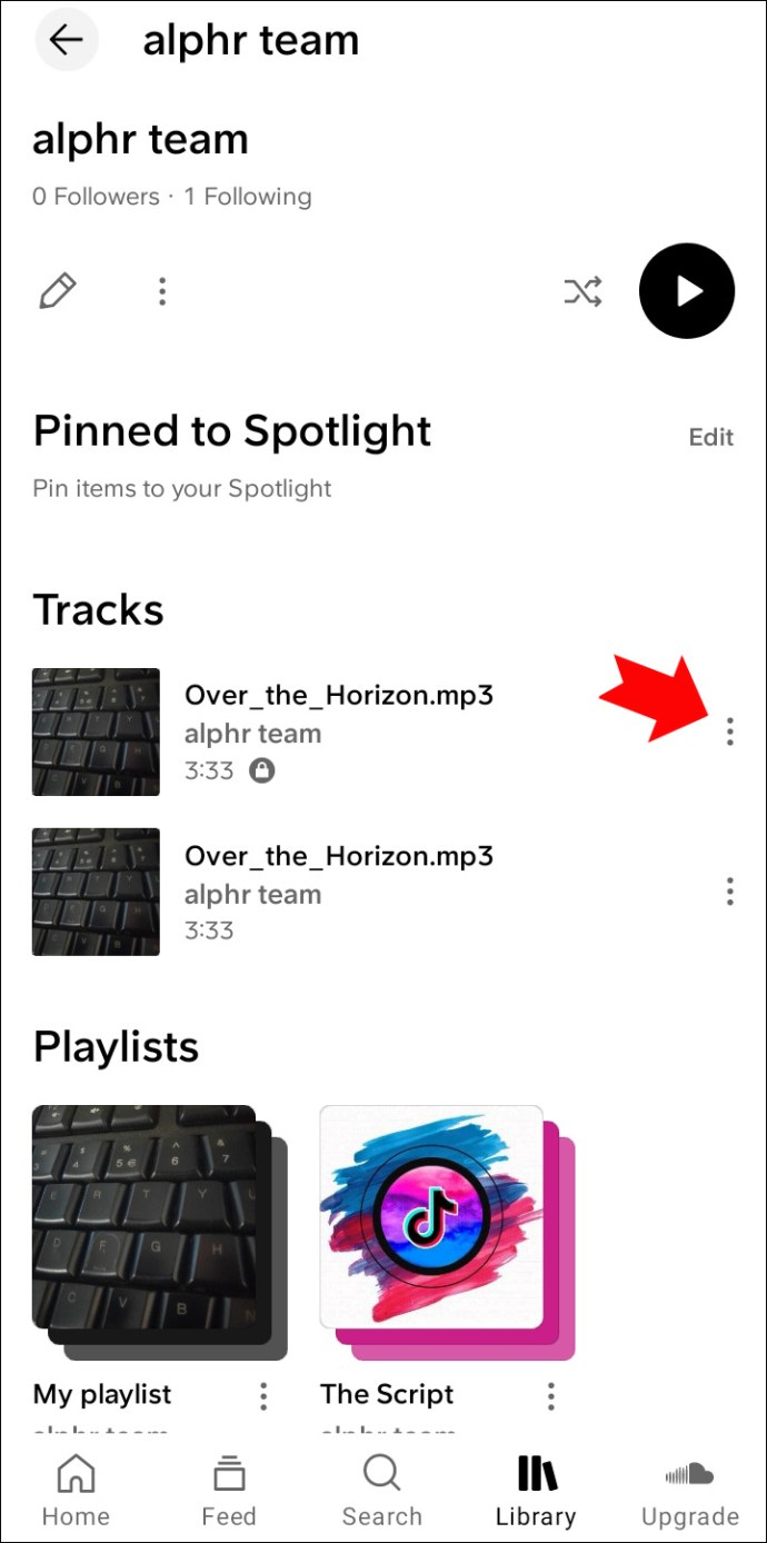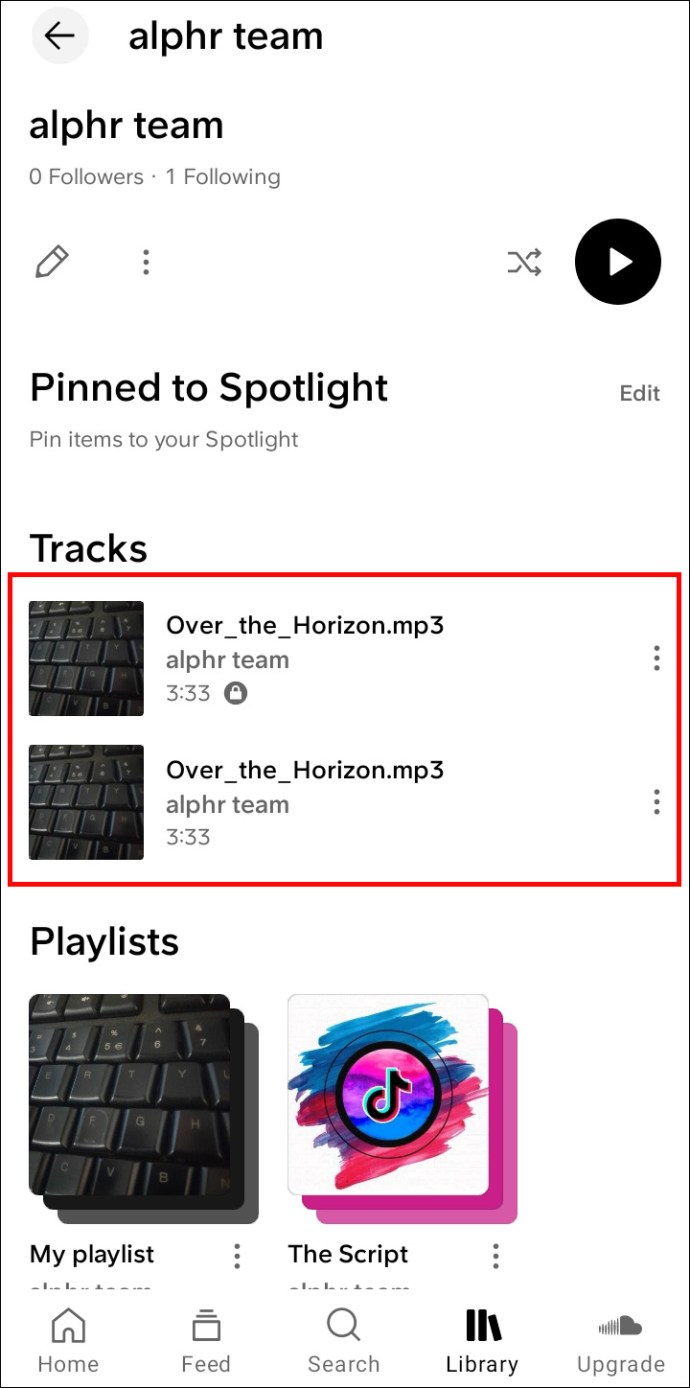 Vá para o painel do seu perfil e encontre as faixas que você carregou.