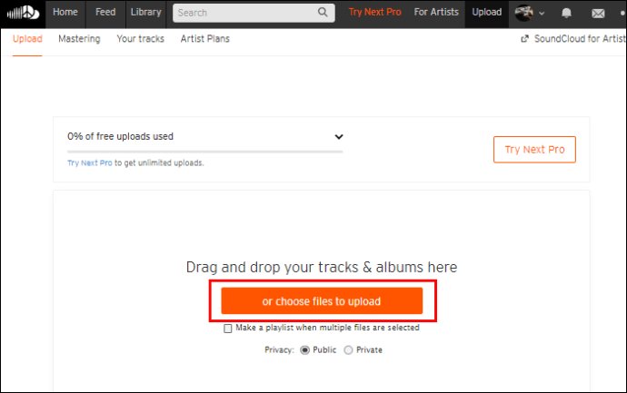 Arraste e solte as faixas que deseja enviar ou clique em”Escolher arquivos para enviar.”