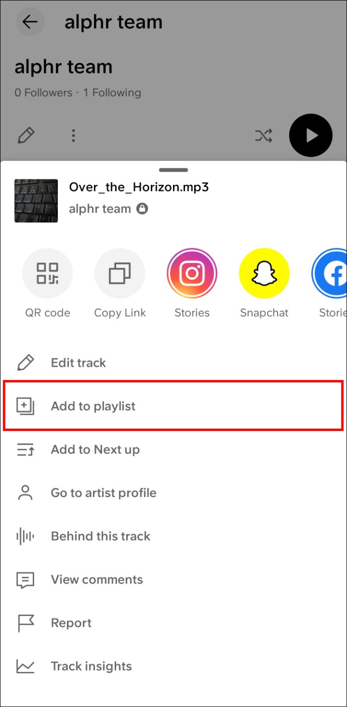 Clique em “Adicionar à lista de reprodução”botão mostrado abaixo de cada faixa.