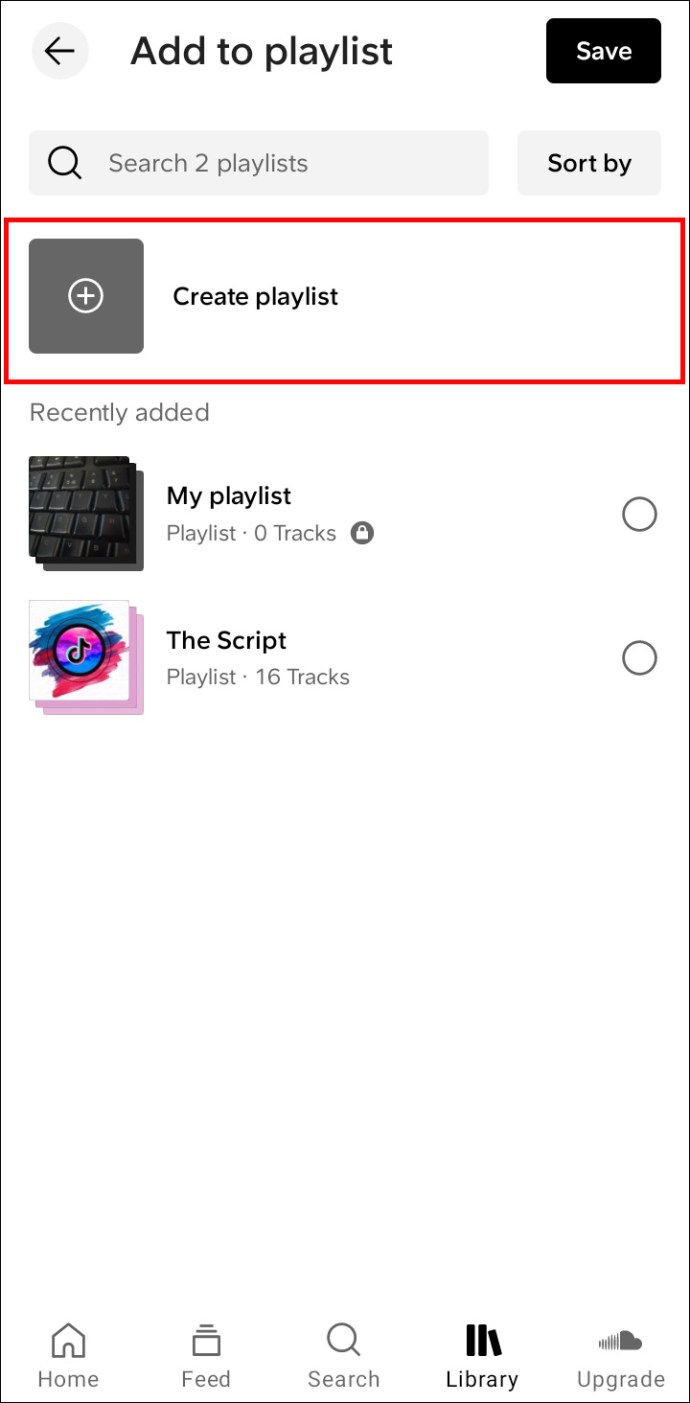 Se você ainda não criou uma lista de reprodução, toque em”Criar lista de reprodução.”