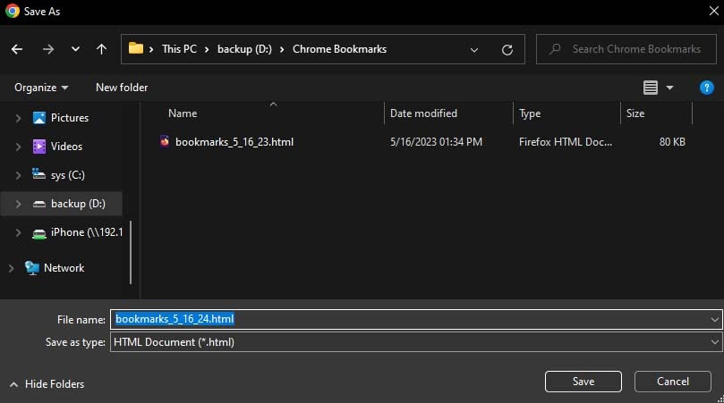 Navegue até o local do seu arquivo HTML de favoritos do Chrome. Clique duas vezes no arquivo HTML de seus favoritos.