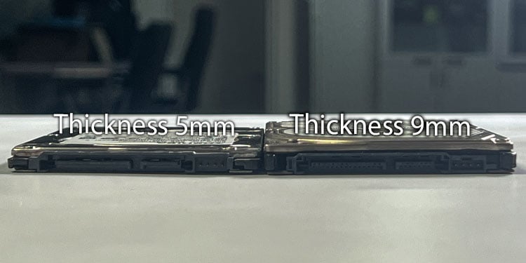 Além disso, todos os HDDs de 2,5″não têm a mesma espessura. O HDD mais comumente usado para laptops tem um tamanho de 9 mm ou 7 mm. A maioria dos laptops usa HDD com espessura de 9 mm. Uma espessura de 5 mm geralmente é projetada para ultrabook.