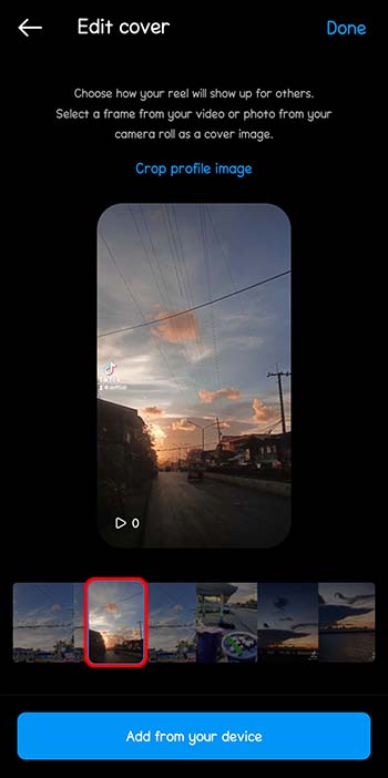 Selecione o quadro do seu vídeo como imagem de capa ou escolha um da galeria do seu telefone.