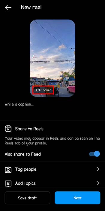 Toque em”Editar capa”na visualização do rolo.