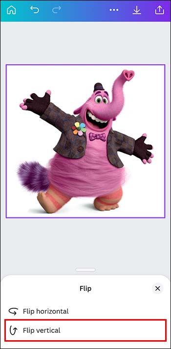 Como o nome da opção indica, isso inverterá sua imagem verticalmente ou em 180 graus. Da mesma forma, a opção”Inverter na horizontal”virará sua imagem de lado. Isso pode ser útil, pois você não pode virar sua imagem horizontalmente usando a alça de rotação.