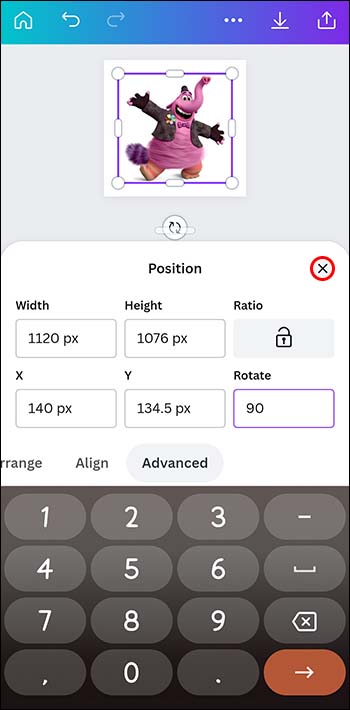 Ao contrário dos clientes de computador do Canva, os aplicativos não não mostra o ângulo exato para o qual você está girando sua imagem. Isso pode ser lamentável se você precisar girar sua imagem para um ângulo específico ou girar várias imagens para o mesmo ângulo. Mas não se preocupe, há uma solução.