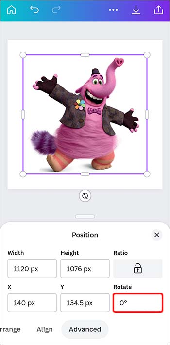 Ao contrário dos clientes de computador do Canva, os aplicativos não não mostra o ângulo exato para o qual você está girando sua imagem. Isso pode ser lamentável se você precisar girar sua imagem para um ângulo específico ou girar várias imagens para o mesmo ângulo. Mas não se preocupe, há uma solução.