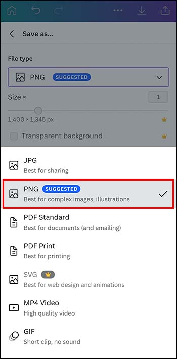 Selecione seu formato preferido em “Arquivo type”(JPG, PNG ou SVG).