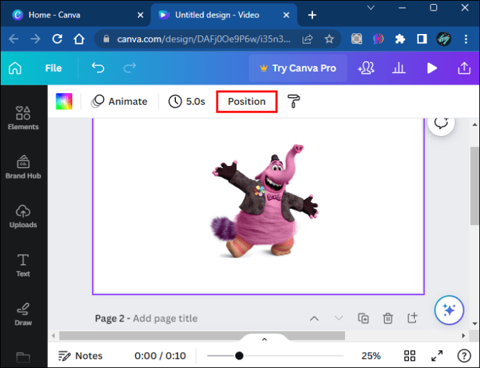Navegue até o botão”Posição”na barra de ferramentas acima do editor (ao lado do botão”Animar”).
