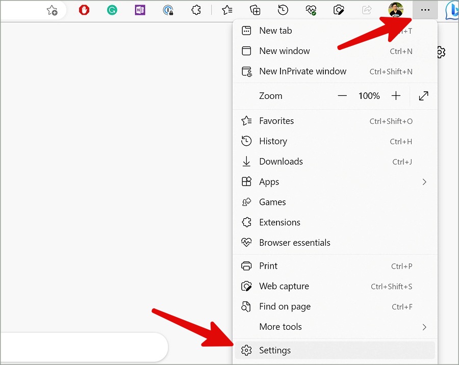 1. Navegue até as configurações do Microsoft Edge (consulte as etapas acima).