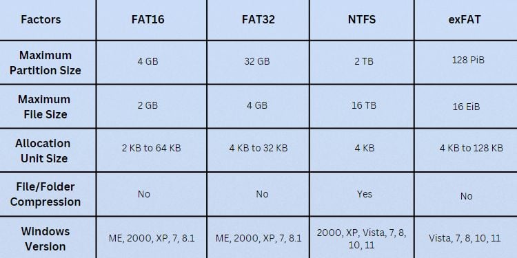 FAT16 vs FAT32 vs NTFS vs exFAT