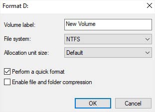 Este é um campo opcional onde você pode nomear o volume conforme sua escolha. Por padrão, é nomeado Novo Volume ou Disco Local. É usado apenas para identificação e não afeta de forma alguma o desempenho do seu disco rígido.