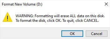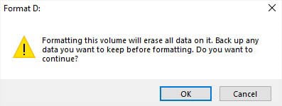 Um prompt de aviso deve aparecer. Pressione Ok para iniciar a formatação.