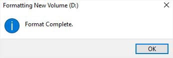 Aguarde até que a formatação seja concluída e uma caixa de diálogo apareça. Pressione Ok.