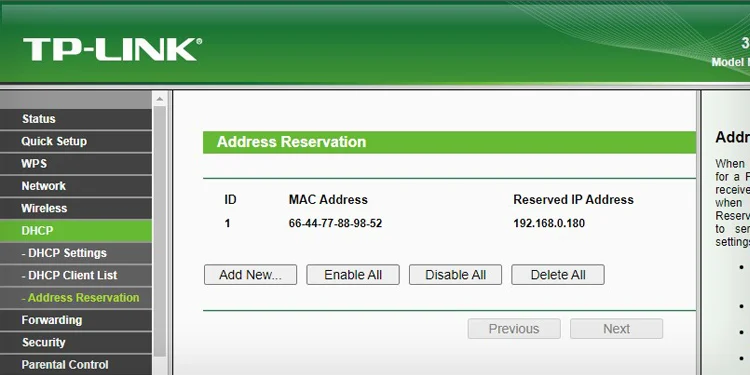 Primeiro, conecte sua impressora Brother a uma rede Wi-Fi. Em seguida, abra o portal do roteador e procure um termo que se pareça com Reserva de endereço DHCP e abra-o. O termo pode variar dependendo do fabricante do seu roteador. Consulte o site do fabricante ou o manual do usuário da impressora para saber mais sobre isso.