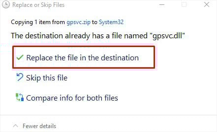 Se o arquivo gpsvc.dll estiver corrompido, você pode estar enfrentando um erro de GPSVC. Além disso, você pode ter excluído acidentalmente o arquivo dedicado. Seja qual for o caso, a melhor maneira de resolver isso é baixar um novo arquivo gpsvc.dll e substituí-lo pelo antigo: