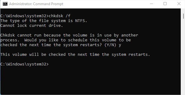 Reinicie o seu PC e o volume será verificado quanto a erros de disco.