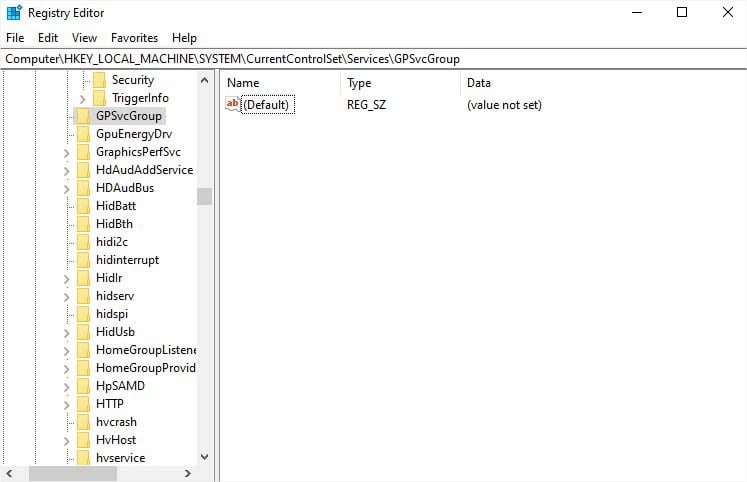 Computer\HKEY_LOCAL_MACHINE\SYSTEM\CurrentControlSet\Services\gpsvc No painel direito, verifique o campo ImagePath e certifique-se de que Data está definido como %systemroot%\system32\svchost.exe-k netsvcs-p.