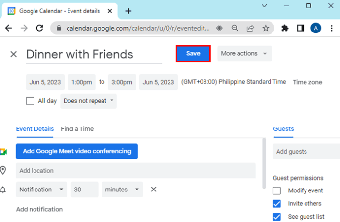 Clique em”Salvar”e seu bloco de tempo será salvo em sua agenda.