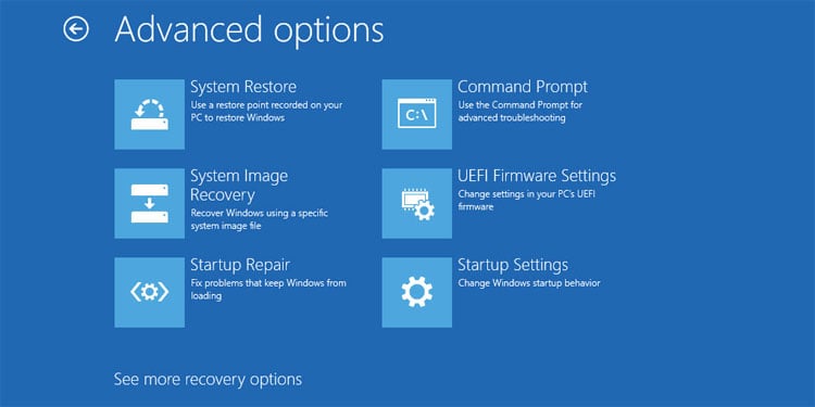 A interface UEFI também monitora o modo de inicialização de recuperação atual. Se ocorrer alguma falha ou algo semelhante, ele pode procurar e reparar automaticamente o firmware. Ele também oferece uma maneira mais fácil de redefinir ou restaurar o sistema operacional em caso de falha do sistema.