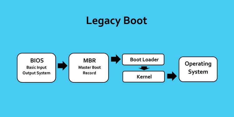 O Legacy BIOS usa uma lista de dispositivos inicializáveis armazenados no CMOS para encontrar o sistema operacional de destino. O CMOS armazena todas as configurações do BIOS e a lista de dispositivos de inicialização, que é ordenada com base na prioridade de inicialização.