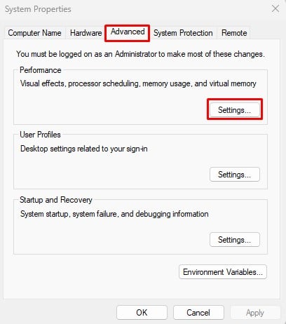 Abra as Propriedades do Sistema e vá para a guia Avançado. Clique em Configuração em Desempenho. Clique na guia Avançado e selecione Alterar. Desmarque Automaticamente gerencie o tamanho do arquivo de paginação para todas as unidades. Clique na unidade C. Marque Nenhum arquivo de paginação e clique em Definir.