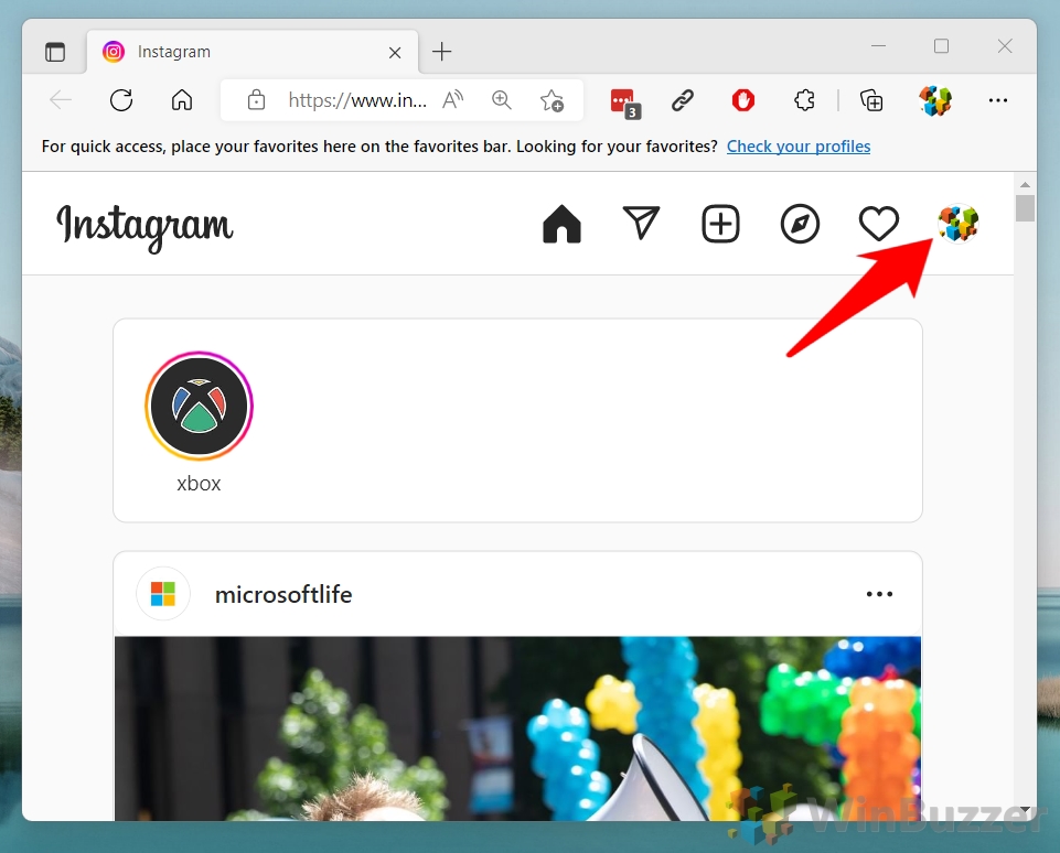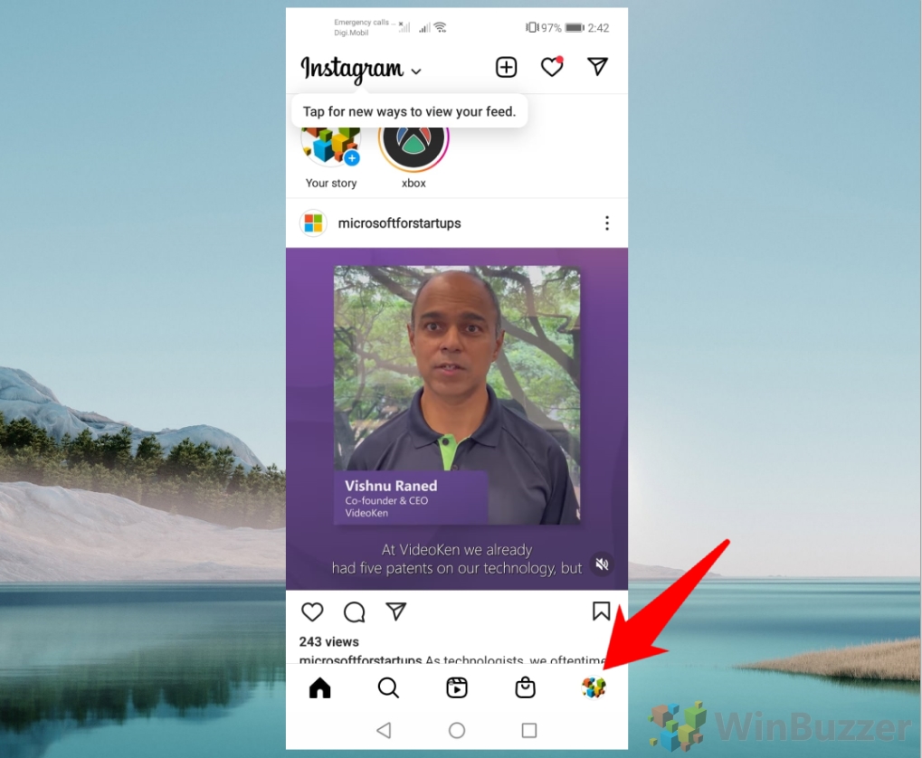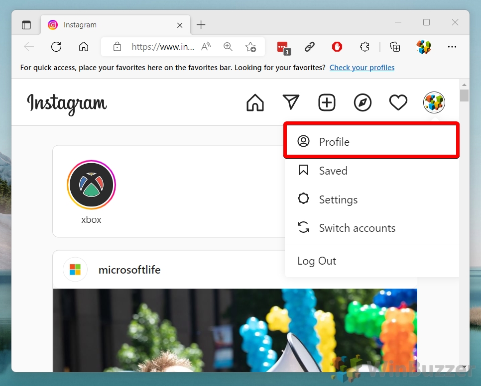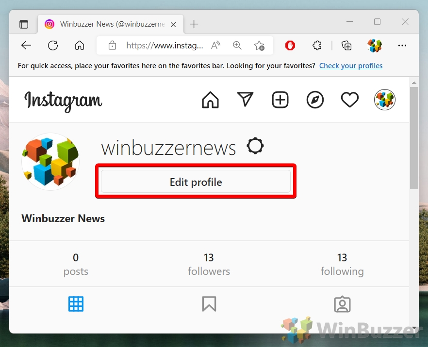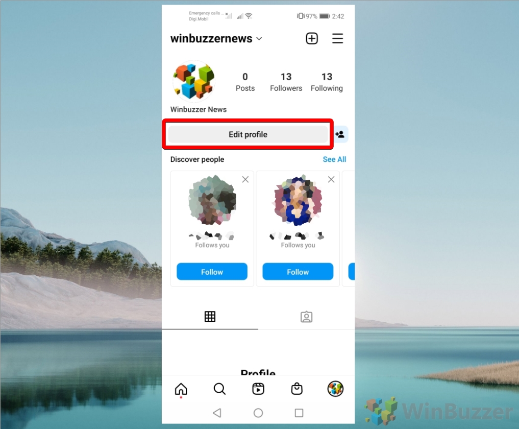 Toque no seu nome ou nome de usuário do Instagram para edição