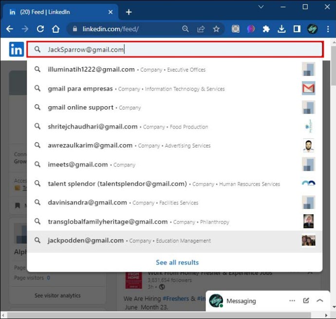 Você pode tentar este método em muitos outros sites de mídia social, como como Facebook e Instagram. No entanto, poucas pessoas compartilham seus endereços de e-mail em seus perfis públicos hoje em dia. Portanto, use o LinkedIn para obter os melhores resultados.