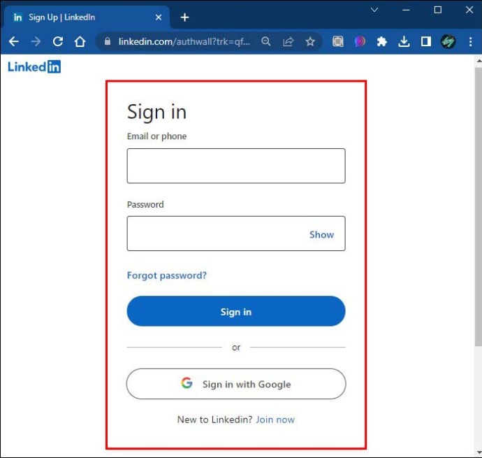 Criar um LinkedIn ou use suas credenciais de login, caso já tenha feito isso.