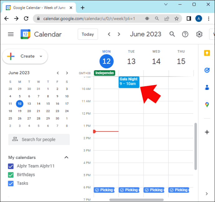 Encontre a tarefa/evento/lembrete que deseja alterar no calendário.