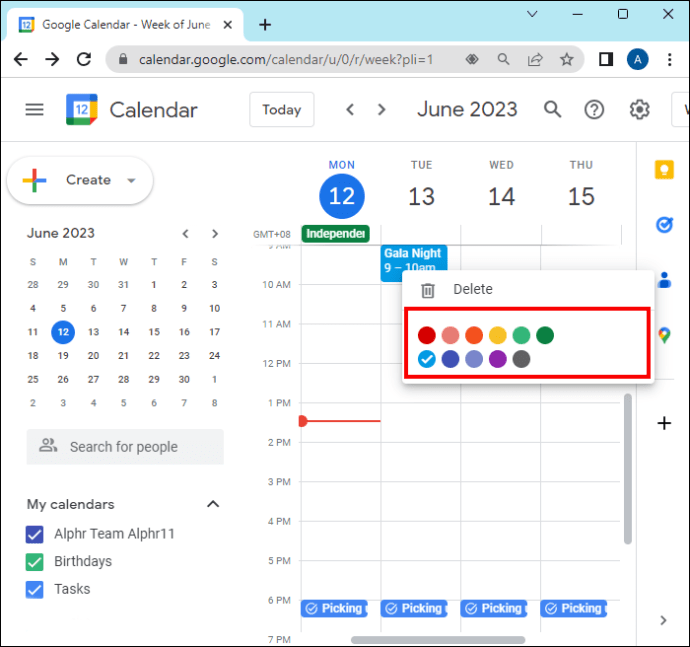 Conforme explicado anteriormente, o Google Agenda permite que você escolha cores individuais para seus diferentes tipos de tarefas e eventos. Ele oferece um conjunto fixo de cores para escolher, predeterminado pelo Google.