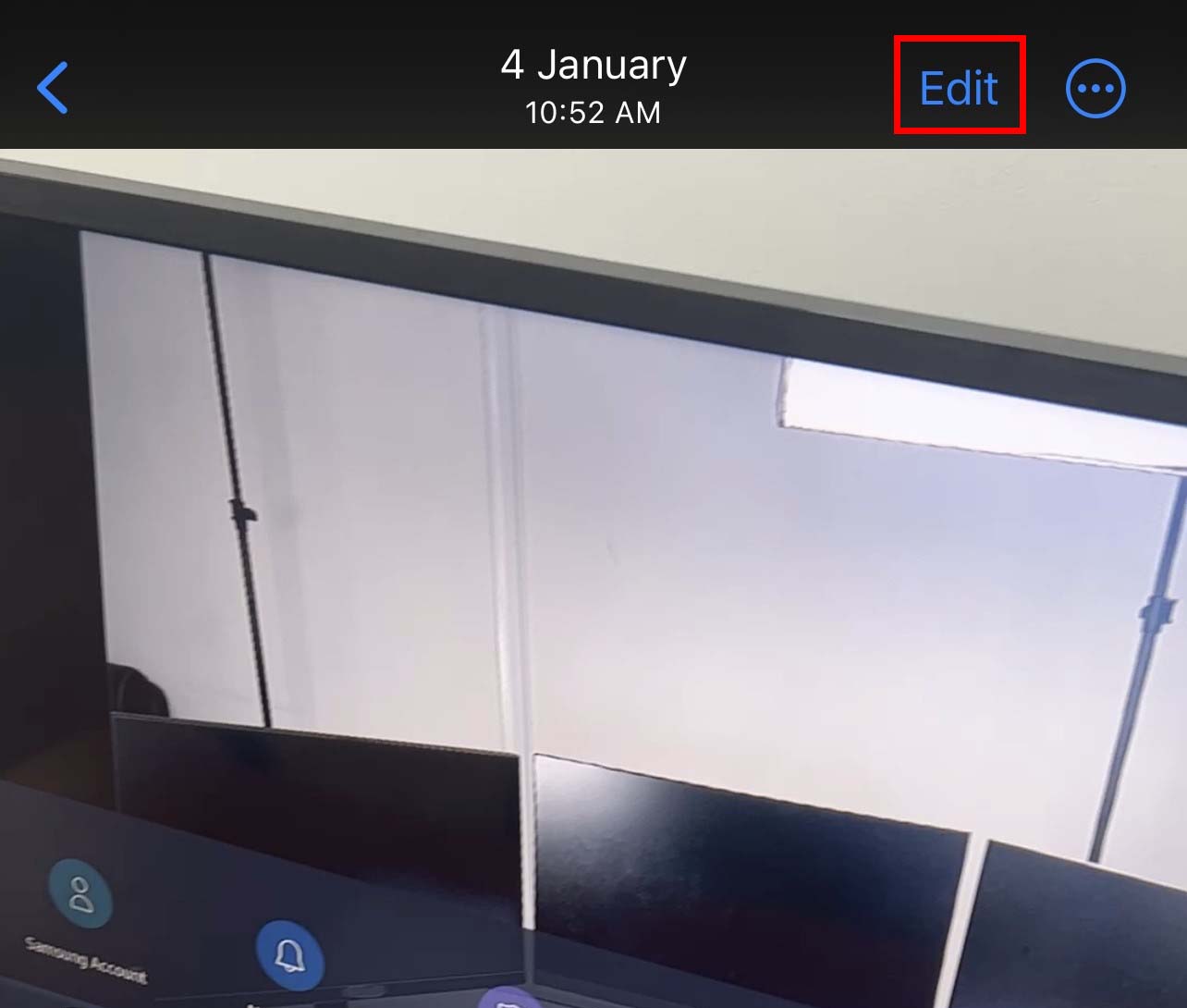 Abra o vídeo que deseja cortar no aplicativo Fotos. Selecione Editar no canto superior direito.