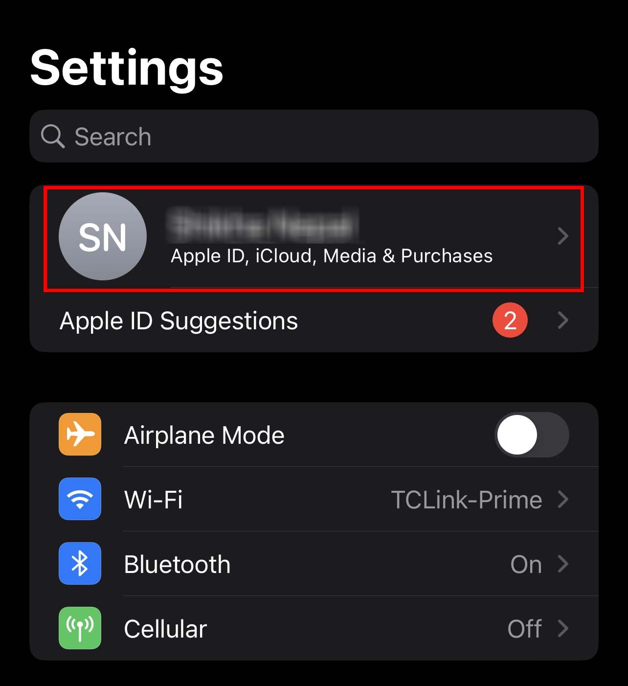Abra Configurações no seu dispositivo. Toque no seu ID Apple na parte superior.